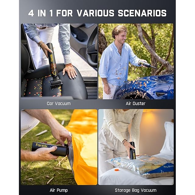 4-in-1多機能ハンディ掃除機: 車の隅を掃除する方法についてまだ心配していますか?浮き輪を膨らませる必要があるときに無力感を感じていませんか?Fanttik V8 Apexコードレス車用掃除機には、さまざまなニーズを満たすための数多くの付属品が付属しています。吸い込んで掃除したり、エアーを吹き込んだり、空気を入れたり、エアーポンプしたりする等、ハンディ式コードレス掃除機なら何でもできます