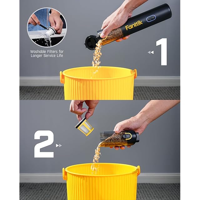 ワンタッチでゴミ捨て: ワンタッチで自動的に蓋が開き、手を汚さずにゴミを捨てられます。車用掃除機のリング掛け金は、不意触れるのを防ぐように設計されています。HEPAフィルターは、なんと95.99%のほこりや粒子を捕らえ、より効率的な清掃性能とより長い耐用年数を実現します。交換用フィルター1個はパッケージに無料で同梱されています