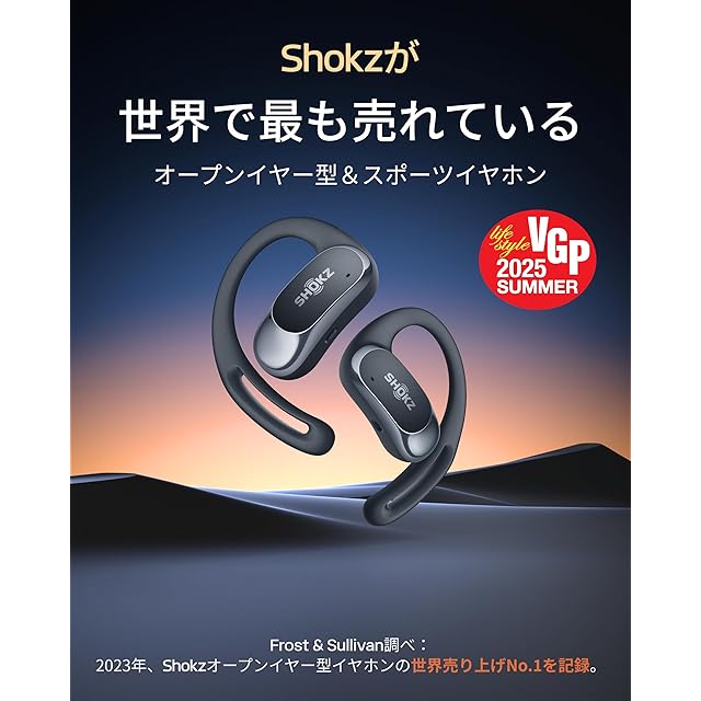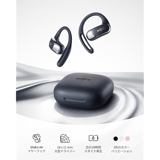 Shokz (ショックス) OpenFit Air オープンイヤー イヤホン ワイヤレスイヤホン 【18x11mm 大型ドライバー 合計48時間再生 / VGP 2025 金賞 / IP54防水】 マルチポイント接続 Bluetooth 5.2 軽量8.7g フィット感 耳を塞がない 左右分離型 急速充電 マイク付き ブラック