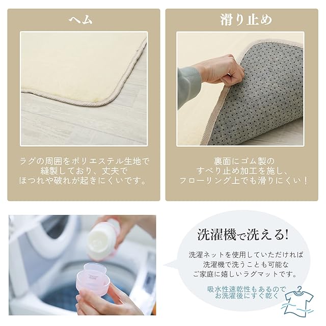 軽量設計、丸洗いOK!毛足が短いのでゴミが絡みにくく、掃除が簡単。いつでも清潔です。