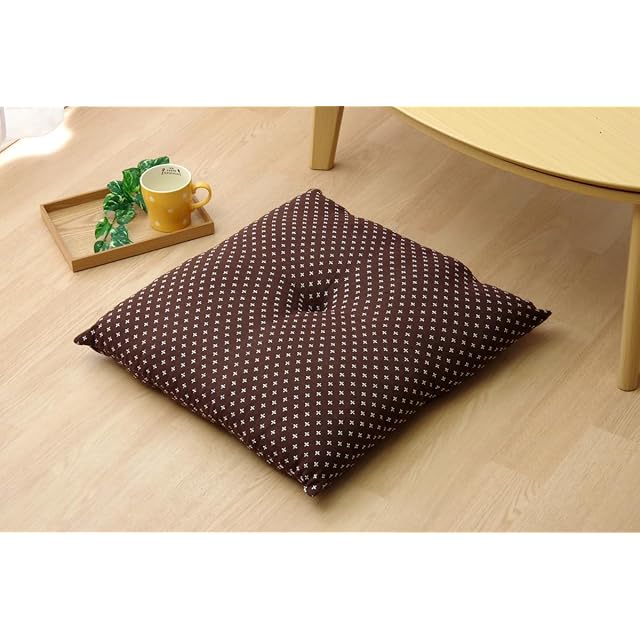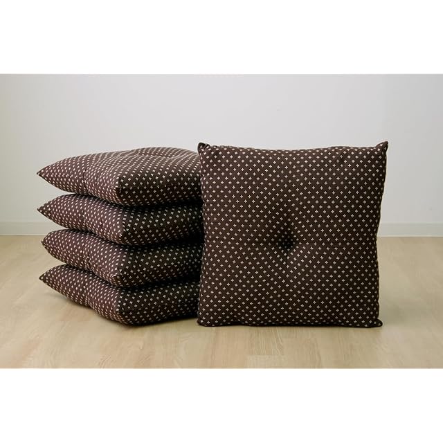 イケヒコ 座布団 銘仙判 日本製 刺し子調 ブラウン 約55×59cm 5枚組 クッション おしゃれ 和モダン 和室 洋室 来客用 #1240880062308