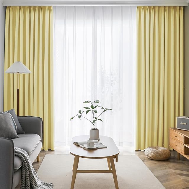 AIFY カーテン 4枚セット 99.9%以上遮光 小窓 ドレープカーテン UVカット 形態記憶加工済み 断熱 節電対策 昼夜目隠し 保温 おしゃれ 洗える 洗濯機対応 (カーテン2枚 レース2枚) 幅100cm x 丈230 cm ペールイエロー