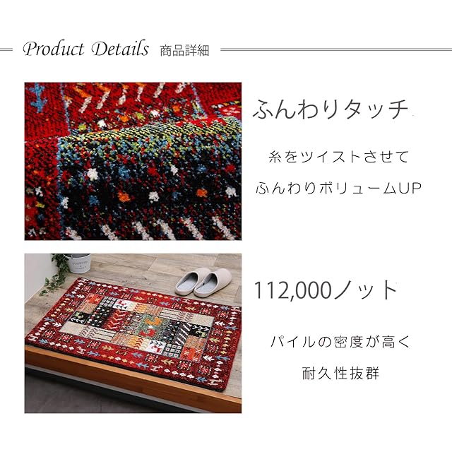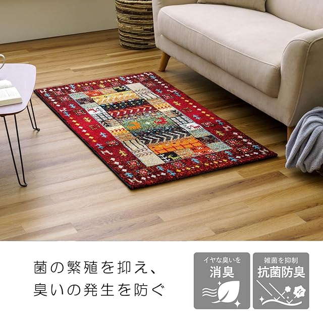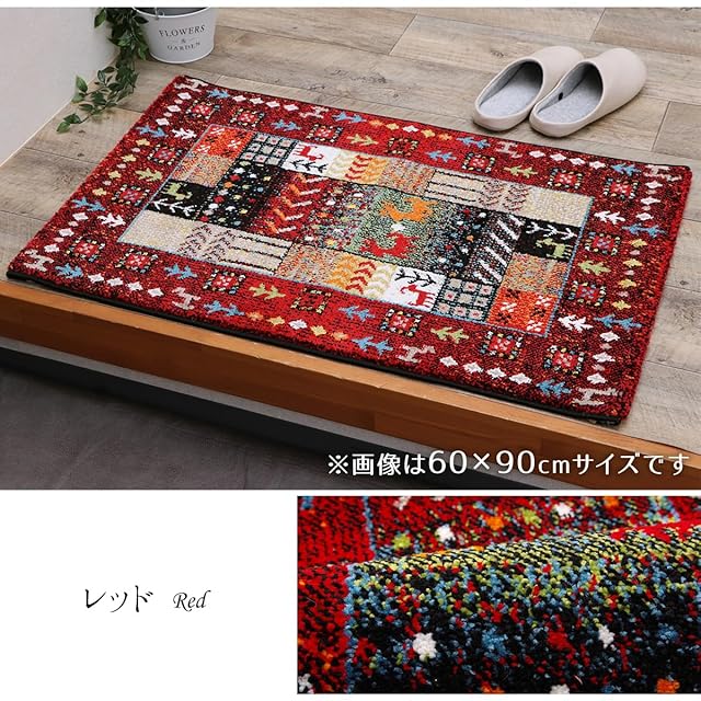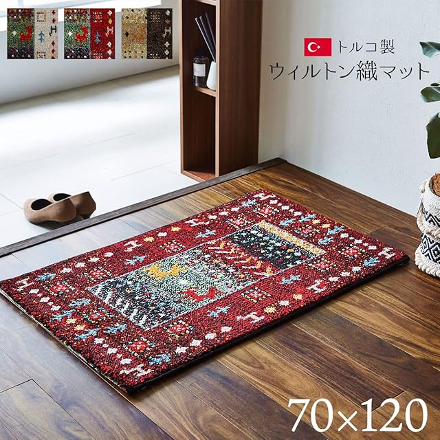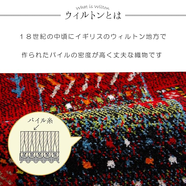 イケヒコ 玄関 選べる マット ラグ ウィルトン 単品 イビサ レッド 約70×120cm 厚み 約15mm トルコ製 へたりにくい 耐久性 弾力性 抗菌防臭 消臭 ギャベ柄 エレガント 洗濯不可 おしゃれ ふわふわ #1311190246401