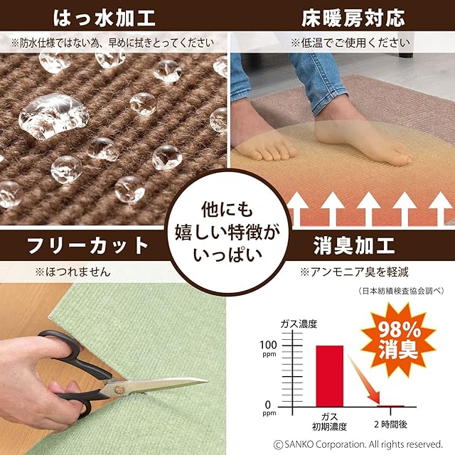 【日本製】 洗濯機OK(繰り返し使えます)、床暖房対応(推奨:低温)、ハサミでカット可能