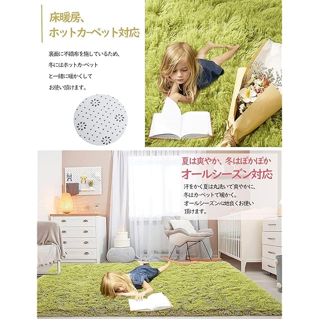 【ラグマット素材】極細繊維素材100%で、ふわふわで弾力性にも優れています。ゴミや埃が絡ま難くて、掃除が簡単です。夏は冷房対策、耐熱合格の試験も実証されたので冬はホットカーペット・床暖房等に対応できます。