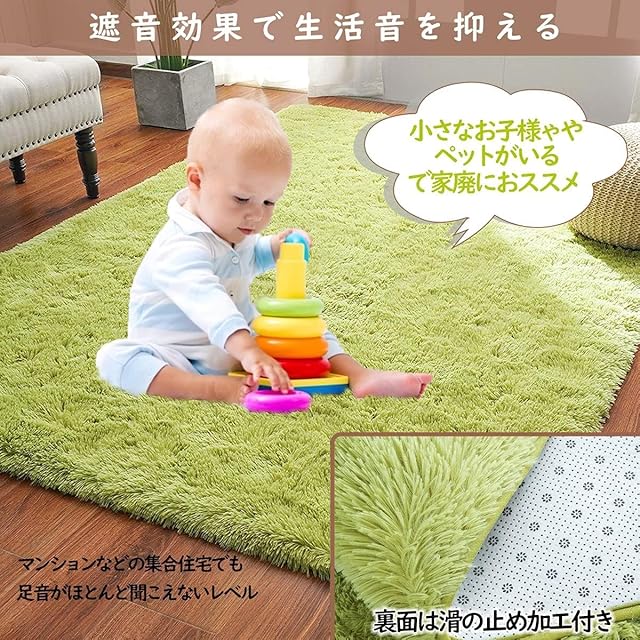 【安心のラグ】カーペットの表面の綿毛は空気に浮遊してちり粒子を捕捉して吸収することができ、室内の空気質量を改善します。ホルムアルデヒドも未検出なので、抵抗力が弱い子供、年配がいる家庭に対して安心のラグです。
