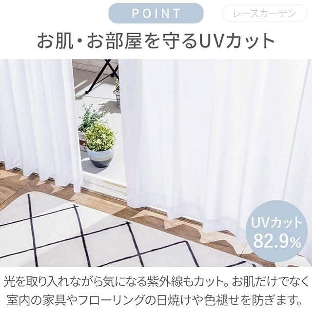 外から見えにくい、UVカットのあるレースカーテンも付いたお買得セット。