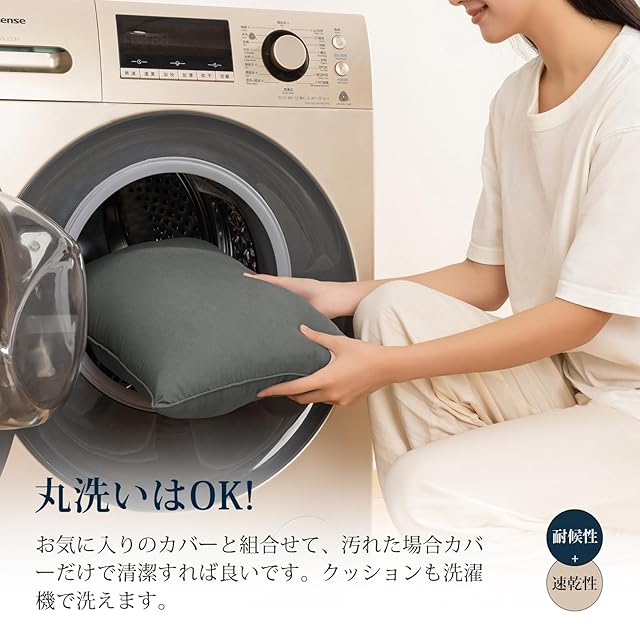 【洗濯可能、丸洗いOK!】面倒な手洗いはいらない!簡単に洗濯機で丸洗い可能!汗や頑固な汚れがあっても、直接洗濯機で洗浄できるので、安心してお使いいただけます。※もし洗濯後に中身が片方に寄ってしまっていたとしたら、 2〜3日しっかり干して、完全に乾いたら中身に空気がはいるように形を整えてください、簡単に元の形に復元できる。