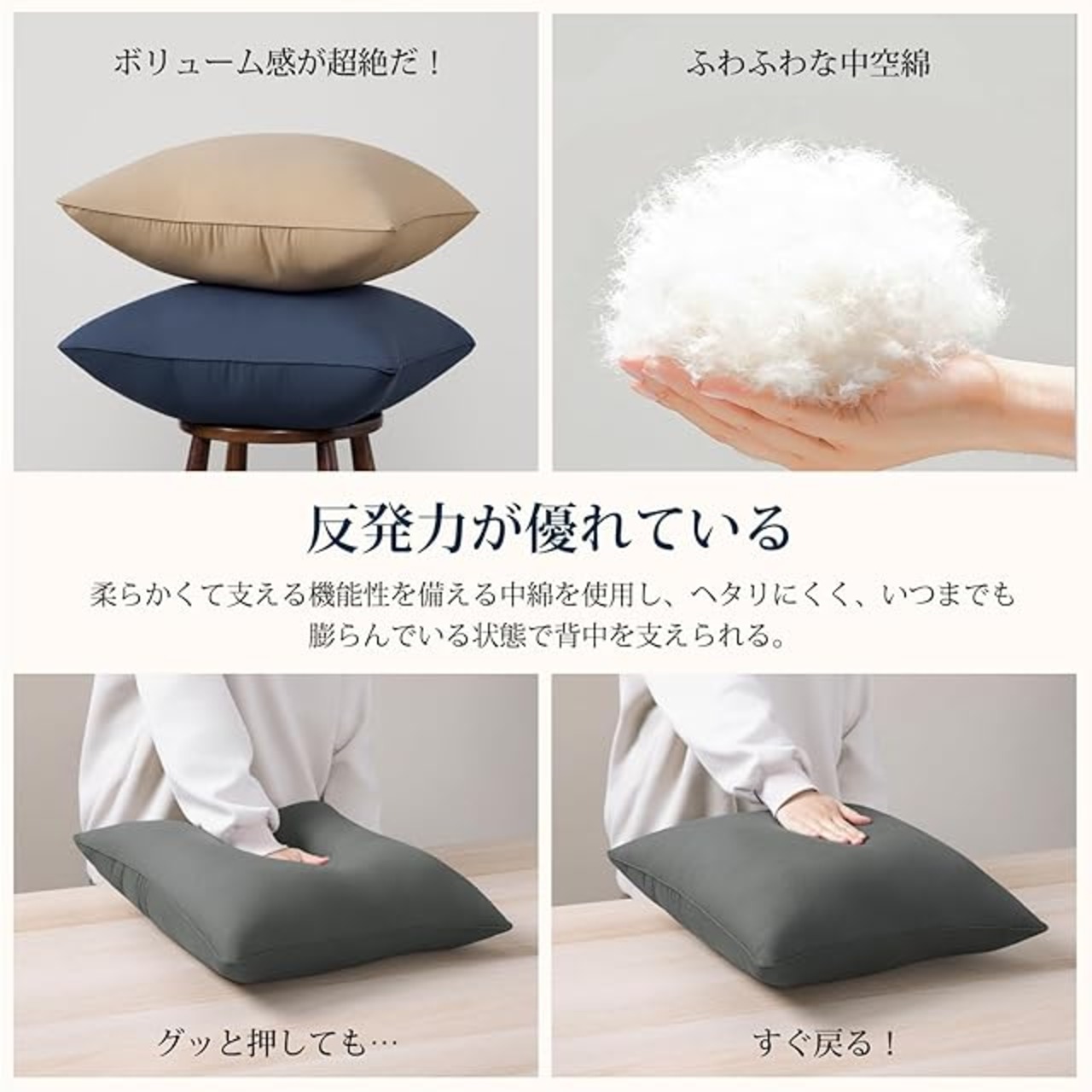 【自社開発7D+3D中空綿+中綿増量15% !】 弊社はより多くの人々の暮らしに寄り添い、快適な生活を実現できるクッションを開発するため、この度は初めて弾力性に優れた7D中空綿と柔らかい3D中空綿を組合わせて贅沢に詰め込みました!7Dと3D中空綿は高級ホテルでよく利用され、羽毛詰より匂いなく、弾力性が高く、長期間使用しても型崩れが起きにくい。綿100%のパイピング縫製を行い、破れや中身の漏れの心配はありません!