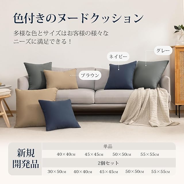 【カバーをつけなくても使える!】【弊社の新規開発品:色付きのヌードクッション!】お客様の様々なニーズをお満足するために、弊社は色付きのヌードクッションを作り上げます。お客様は自分のお好きな色付きのクッションが選べ(全3色)、そして、側生地は抗菌防臭とピーチスキン加工により、肌にもっと優しくてカバーをつけなくても、簡単便利にそのまま使用できます。自分のお好きなカバーを掛けて使用してもいい選択ですよ。
