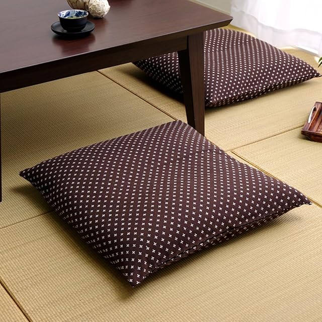 イケヒコ 座布団カバー 銘仙判 刺し子調 ブラウン 約55×59cm 1枚 クッションカバー おしゃれ 和モダン 和室 洋室 #1240890062905
