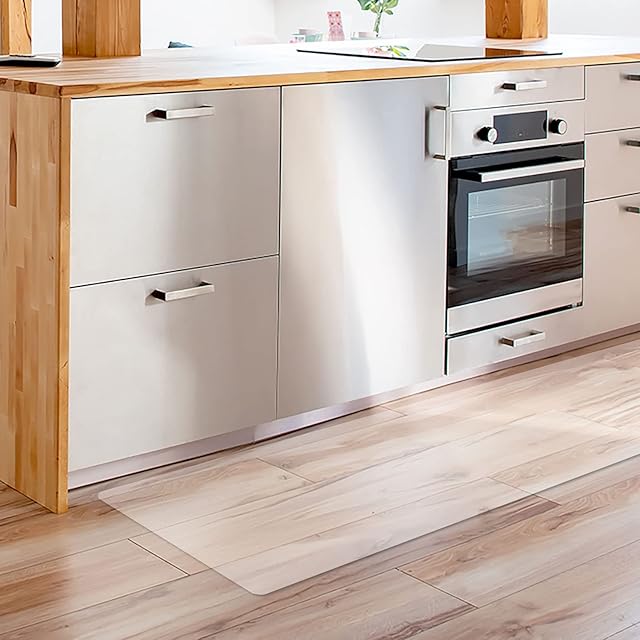 フリーリー キッチンマット クリア 透明マット 拭ける 抗菌 防臭 厚1.5mm 床 保護 傷防止 撥水 クリア 水拭き PVCマット ビニール 台所 (45×240cm)