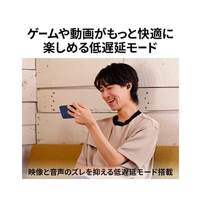 【ゲームや動画視聴をより快適に楽しめる低遅延モード】Bluetooth伝送時に必ず発生する音声の遅延を抑制し、映像とのずれを抑え、スマートフォンやタブレットでのゲームや動画視聴を快適に楽しめる低遅延モードを搭載。低遅延モードはイヤホン本体でON/OFFの操作が可能。
