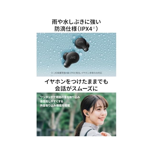 【雨や水しぶきに強い防滴仕様※】 ※JIS保護等級4級(IPX4)相当。 イヤホン本体のみ対応。