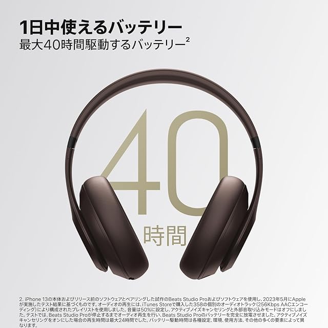 Beats Studio Pro - ワイヤレス Bluetooth ノイズキャンセリングヘッドフォン - パーソナライズされた空間オーディオ、USB-C ロスレスオーディオ、AppleおよびAndroidデバイスとの互換性、最大40時間の再生時間 - ディープブラウン