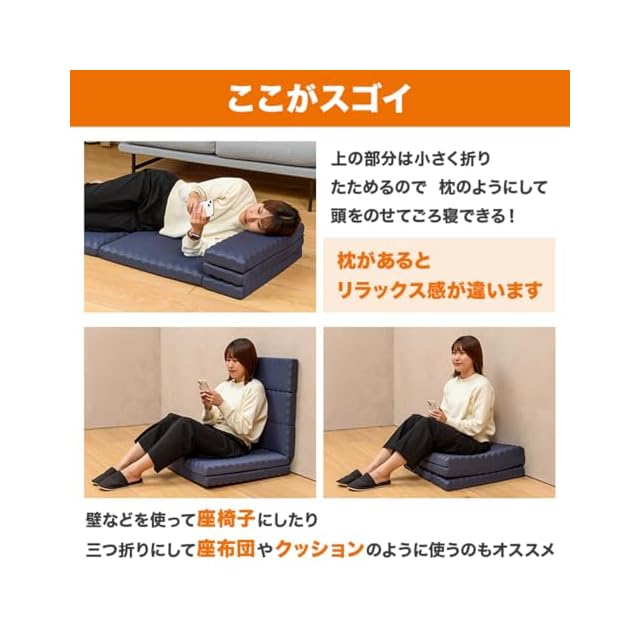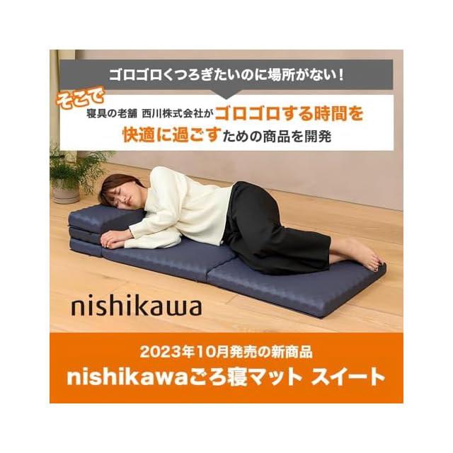 nishikawa ごろ寝マット スイート (ネイビー) お昼寝 ごろ寝クッション 座布団 軽量 コンパクト 折り畳み キャンプ 車中泊 HD93995501