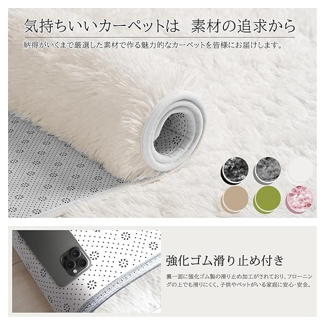 【高クッション性】12mmの厚みで、通常のカーペットより柔らかく、足元に優しい設計。リビング、寝室、玄関、床暖房など、さまざまなシーンで活躍
