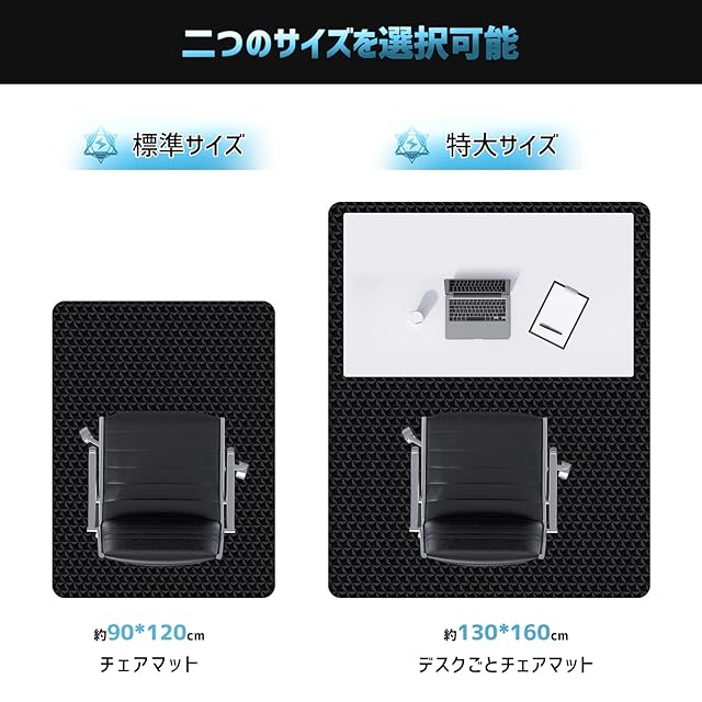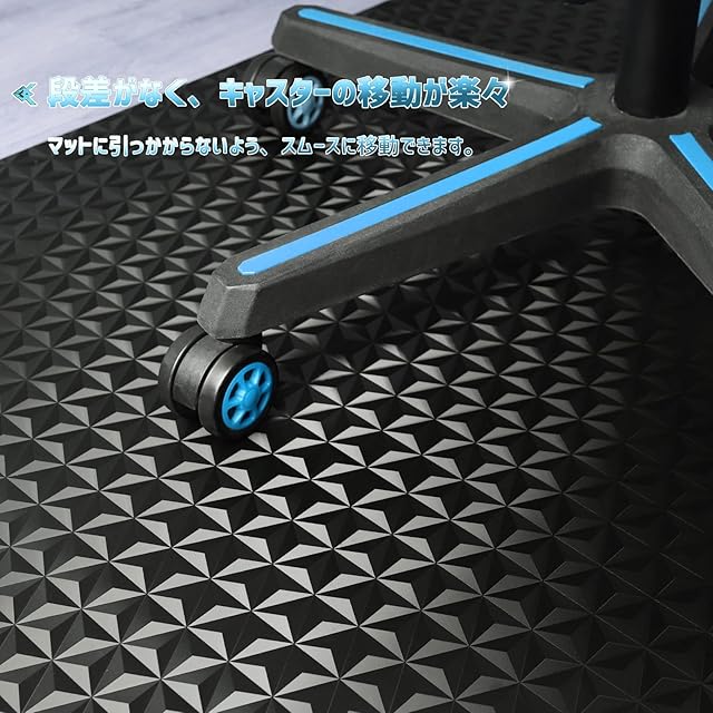 【改善された硬度・ズレない】以前のタイプより硬くなります。耐荷重150kgまで、圧力が直接かからないようにして、マットが緩衝材として床をしかっり保護できます。キャスターから床のへこみ、キズを有効に防ぎます。動くと前後に波打った状態にならない、都度直す不要でズレにくくなります。