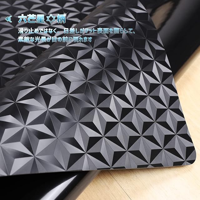 【ユニークな六芒星✡柄】スペシャルな六芒星柄のデザインで部屋の雰囲気を損なわず、日差しがマット表面を照らす度に、反射光の効果で、素敵な光景が目の前に現れます。部屋に飾ることができます。また、柄の表面に細かい溝が切ってありますが、滑り止め効果が強化されて、滑ることなくご利用いただけます。
