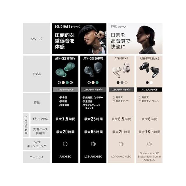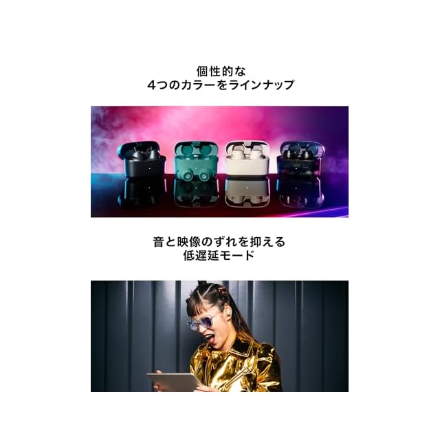 技適マーク認証済み商品(周波数帯:2.4GHz帯)圧倒的な低域表現と好きを極めるノイズキャンセリング:独自設計のφ9mm ドライバーと、空気の流れをコントロールする音響スペースとダクトを配置。圧倒的な重低音とバランスの取れた中高域を両立し、日常的にライブにいるかのような臨場感で音楽や動画を楽しむことができます。ドライバー背面に、空気の流れをコントロールするための音響スペースとダクトを配置。理想的なドライバーの動きにより、低域の量感を楽しめます。フィードフォワード式のアクティブノイズキャンセリング機能を搭載。おうちの空調音や 通勤通学時の電車やクルマの走行音など、あなたの周りのノイズを抑えて、大好きな音楽 や動画に一瞬で夢中になることができます。