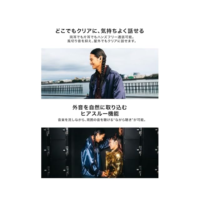 ヒアスルー機能とトークスルー機能:音楽を流しながら散歩やスポーツ、家事やテレワークをする際や、電車やバスでの通勤・ 通学時に周囲の音を気にしながらリスニングしたいときに便利です。コンビニのレジでのちょっとした会話や、駅や空港などのアナウンスを“とっさに”聴きた いときに最適な機能です。
