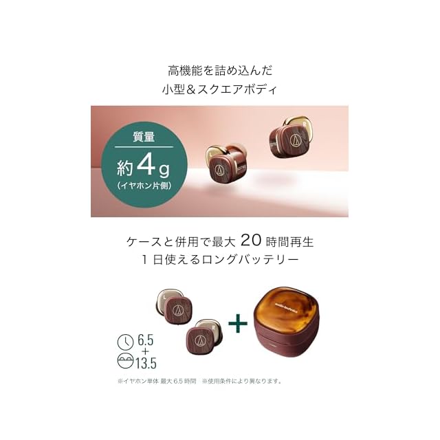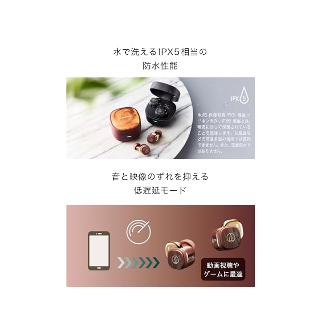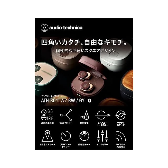 オーディオテクニカ ATH-SQ1TW2 BW ワイヤレスイヤホン Bluetooth マキアート模様 最大20時間再生 マルチポイント対応 小型軽量 アプリ対応 ヒアスルー 低遅延モード 急速充電 Qiワイヤレス充電対応 置き忘れアラート 防水 IPX5 アンバーブラウン