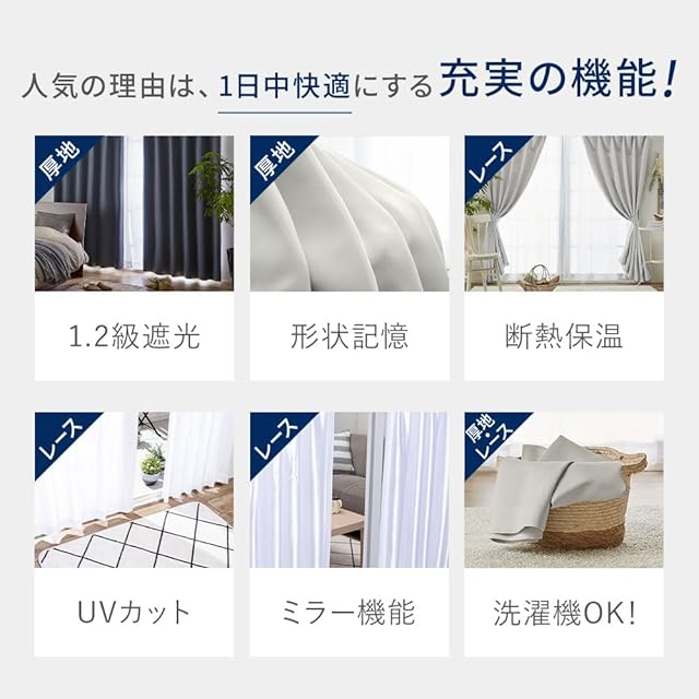 外から見えにくい、UVカットのあるレースカーテンも付いたお買得セット。