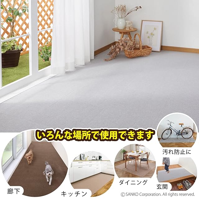 【敷く場所は自由自在】 リビング、ダイニング、キッチン、ペットマット、廊下、玄関などいろんな場所で使用可能。ハサミでカットできるので凸凹部分も敷き詰められます