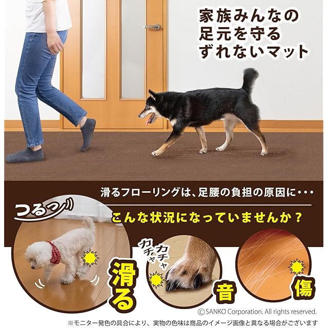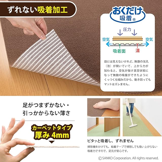 【おくだけ吸着】 床に置くだけでズレない特殊加工、簡単に外せて、何度でも敷き直し可能