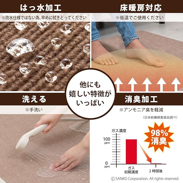 【日本製】 繰り返し使えます(手洗い)、はっ水加工、床暖房対応(推奨:低温)、ハサミでカット可能