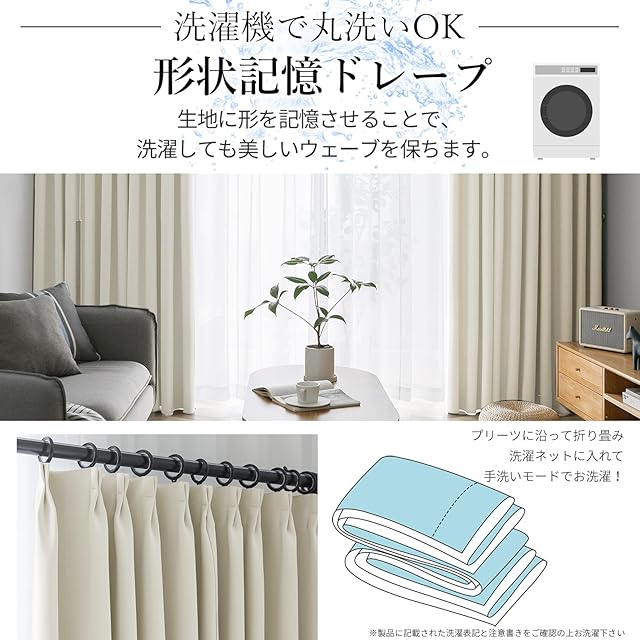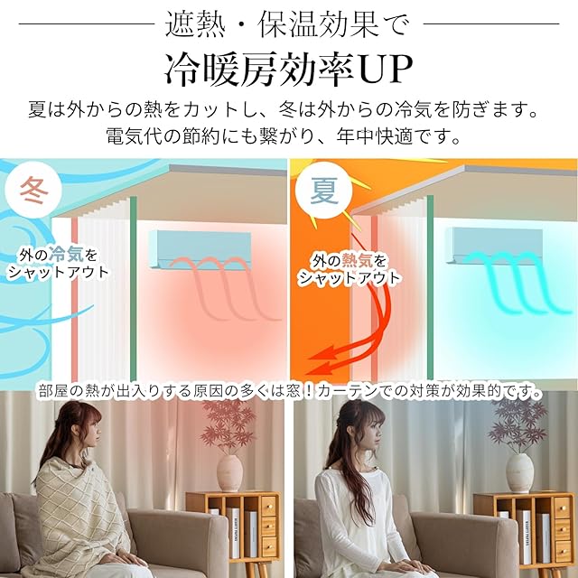 【遮熱保温·形状記憶】届いてすぐ使えるドレープカーテン2枚、同色タッセル付きます。夏は外の熱気をカットし、室温の上昇を抑え冷房効率アップします。冬は外の冷気を遮り、室内の暖かい空気を逃がさないので暖房効率もアップします。ペットにも25年中快適に過ごせます。洗濯機でまるごと洗えます。お手入れしやすいのでいつも清潔に使用できます。カーテンの重みで洗濯ジワも伸ばすことができので、形態安定としてはとても効果が期待できます。