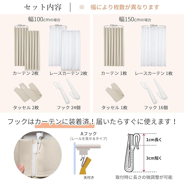 AIFY カーテン 4枚セット 99.9%以上遮光 小窓 ドレープカーテン UVカット 形態記憶加工済み 断熱 節電対策 昼夜目隠し 保温 おしゃれ 洗える 洗濯機対応 (カーテン2枚 レース2枚) 幅150cm x 丈178 cm ベージュ