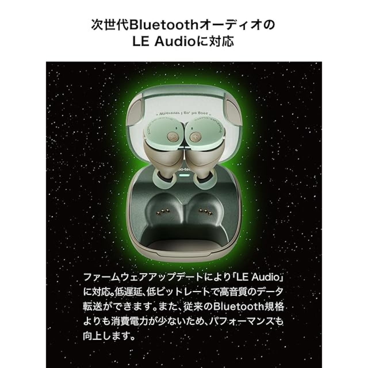 圧巻の重低音を堪能できる、φ9mm SOLID BASS HD TWSドライバー:完全ワイヤレスで重要な装着感を追求しながら、圧巻の重低音を再生する大口径ドライバーを搭載。高い密閉性により低音を逃さず、また、高精度なハイブリッドノイズキャンセリング機能を掛け合わせることで、大好きな音楽を心ゆくまで堪能することができます。ファームウェアアップデートでLE Audioに対応。