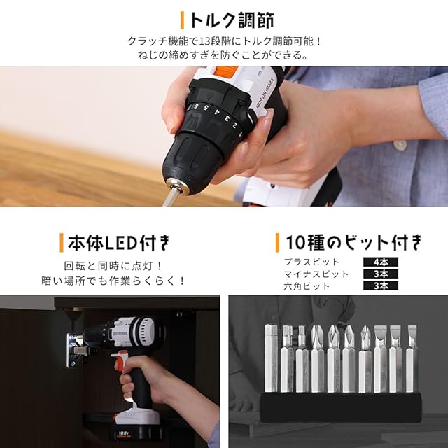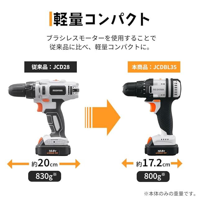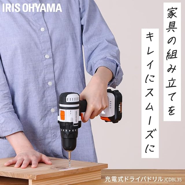 2023モデル アイリスオーヤマ 充電式 ドライバドリル メンテナンス不要 JCDBL35 10.8V バッテリー・充電器付 軽量&スピード調節機能 DIY初心者でも使いやすい 【10.8V共通バッテリーシリーズ】
