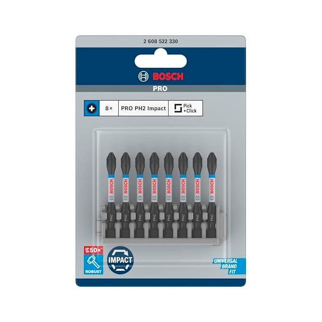 ボッシュ(BOSCH) ドライバービットセット(8本・六角軸6.35㎜・9㎜溝シャンク・PH2x50㎜) 2608522330