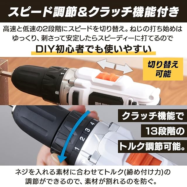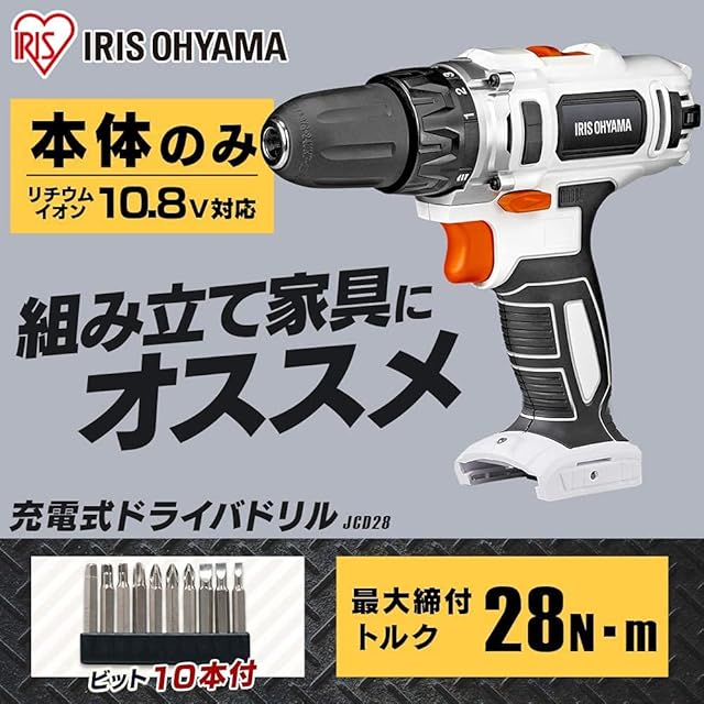 アイリスオーヤマ 充電式 電動ドライバー 10.8V 本体のみ 老若男女問わず使いやすい 軽量&スピード調節機能 DIY初心者でも使いやすい JCD28-Z 【10.8V共通バッテリーシリーズ】