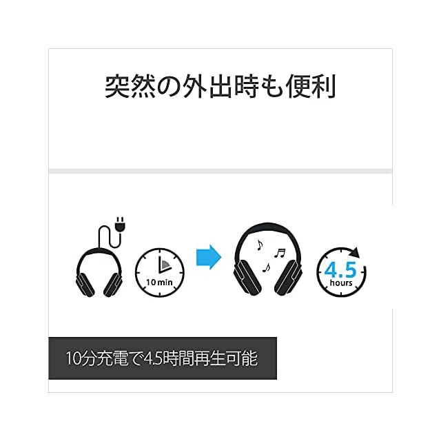充実のバッテリー性能 最大50時間使用可能 10分充電4.5時間使用の急速充電可能
