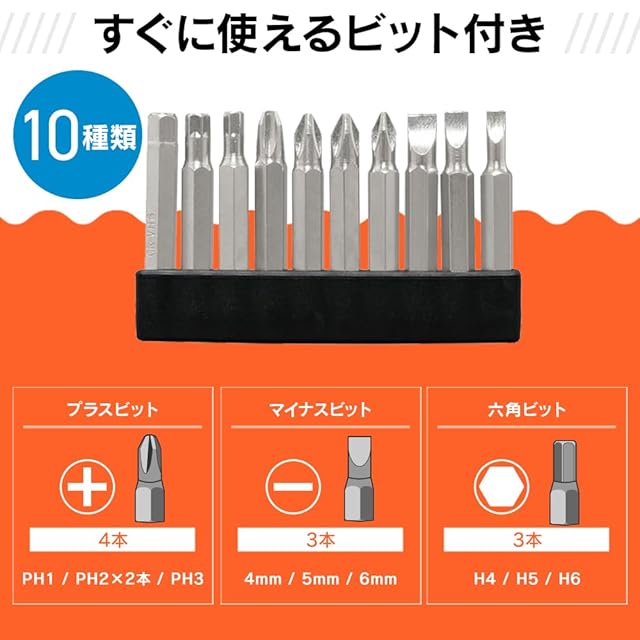 長いネジや堅い材質のネジ締めに!