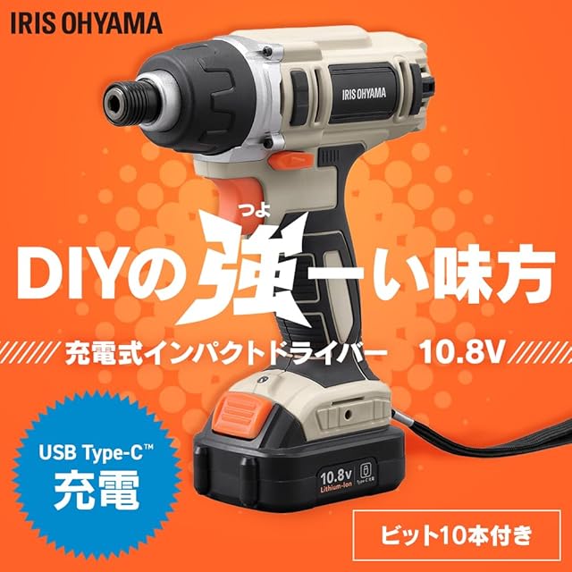 アイリスオーヤマ 充電式インパクトドライバ10.8V JID80TC サンドベージュ