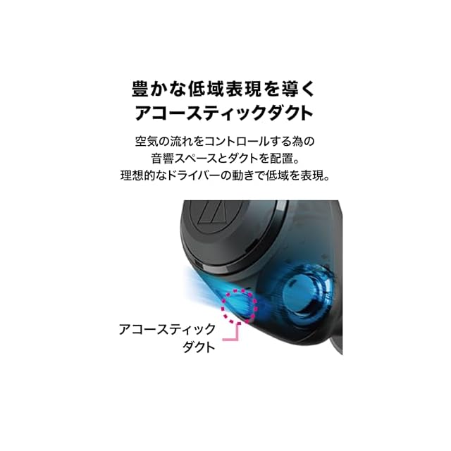 技適マーク認証済み商品(周波数帯:2.4GHz帯)●完全ワイヤレスで重要な装着感を追求、圧巻の重低音を再生する大口径ドライバーを新規開発 ●ドライバー背面に、空気の流れをコントロールするための音響スペースとダクトを配置。低域の量感を楽しめます。