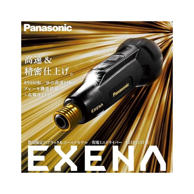 【限定生産モデル】パナソニック(Panasonic) 電動ドライバー USB Type-C 充電式 3.7V 850mAh 正転・逆転 手締め機 ブレーキ付 LEDライト ビットセット 充電ケーブル付属 軽量 小型 ネジ締め DIY 電動工具 ミニ EZ1D11ST1 ブラック&ゴールド