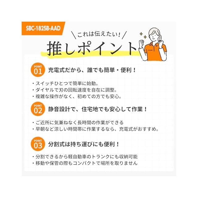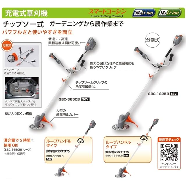 工進(KOSHIN) 【バッテリー2個付き】 18V 2.5Ah 充電式 草刈機 SBC-1825B-AAD バッテリー2個・充電器付 軽量 分割式 Uハンドル 予備バッテリー