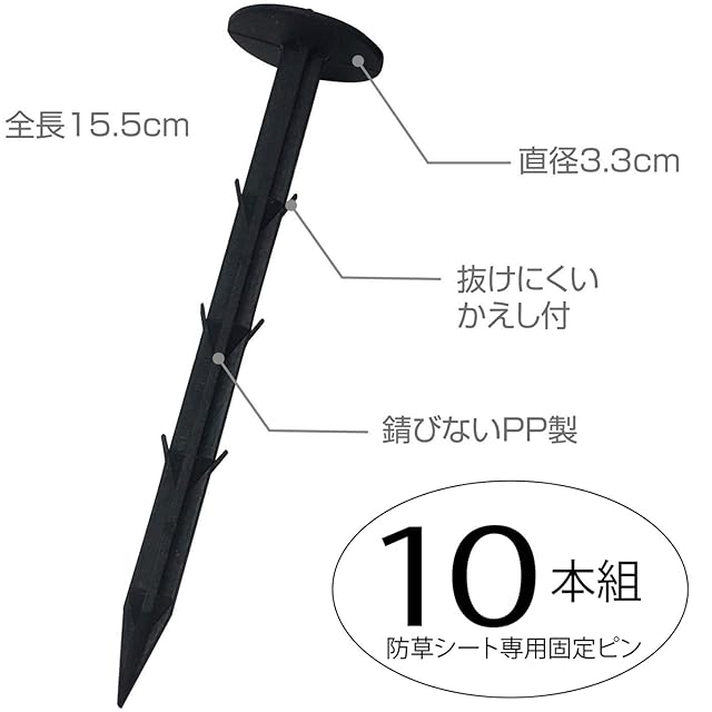 【防草シートなどの固定に】:防草シートや園芸用不織布シート、農業用マルチシートの固定に。