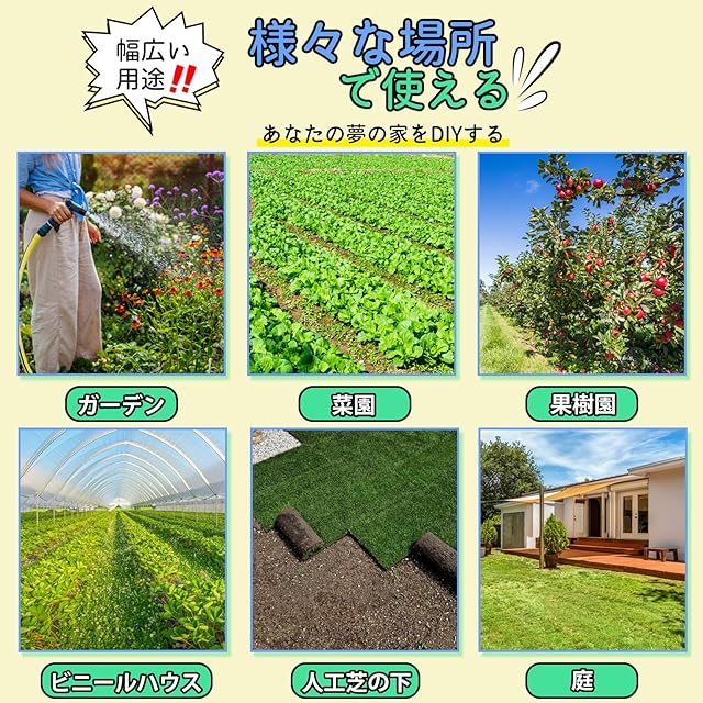 幅広く使用:除草シート 不織布の用途は広範で、各種の応用に用いることができて、花園、芝生、野菜畑、花壇、砂利道、舗装煉瓦路、歩道、車道、建築現場など様々な場所でご利用いただけます