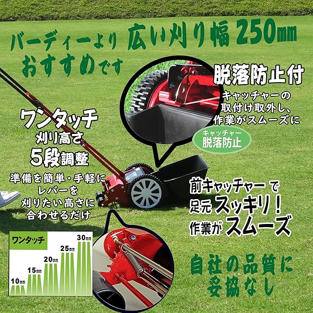 安心・安全・日本製」刃研ぎのできる手動芝刈機刈です