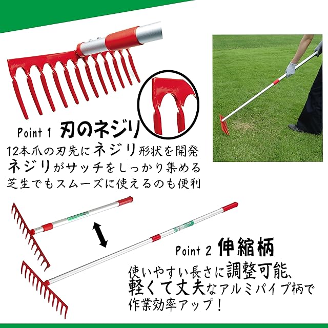キンボシ(Kinboshi) 芝生のサッチ取りレーキ 伸縮式 金星 12本爪 アルミ柄 4036