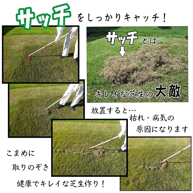 芝生が長いとサッチが取れない場合もありますので、25mm以下に芝刈りされてからご使用される事をお勧め致します。