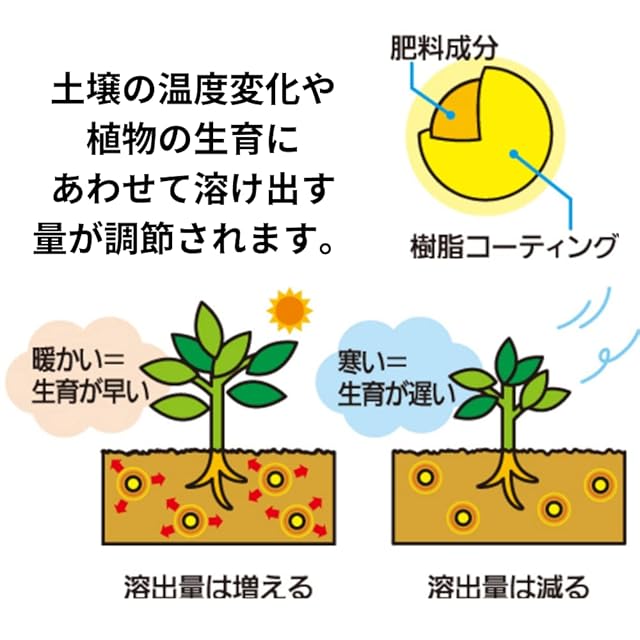溶出スピードの異なる肥料をブレンドし効果が持続!