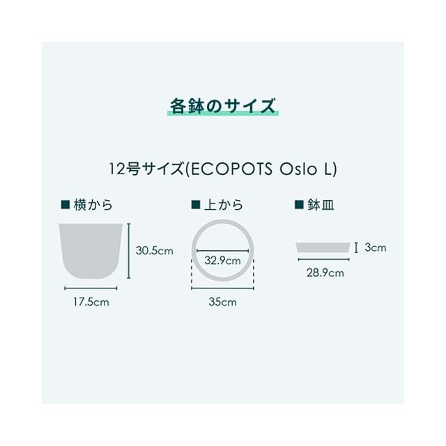 【植木鉢のサイズ】■号数:12号■ サイズ 外径: 35cm 内径: 32.9cm 高さ: 29.5cm ■ 重さ: 2600g ■ 容量:21.70L ■カバー利用:あり■底穴:あり ■鉢皿付き:外径28.9cm、高さ3cm■ 同梱物:植木鉢、鉢皿、鉢底網
