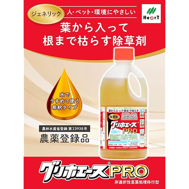 ハート(Heart) グリホエースPRO 1L 12本セット 除草剤 液剤 原液 ジェネリック 頑固な雑草 根まで枯らす 笹 つる スギナ 宅地 駐車場